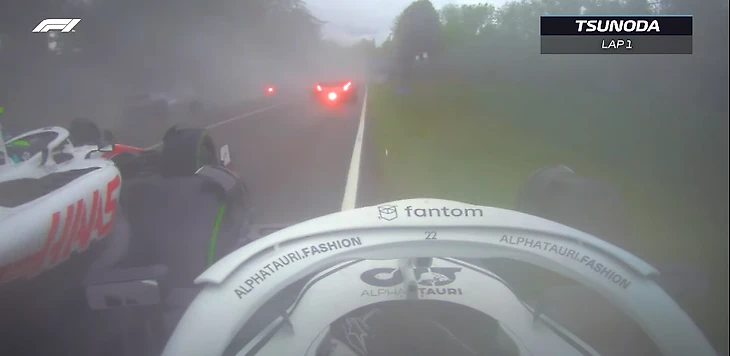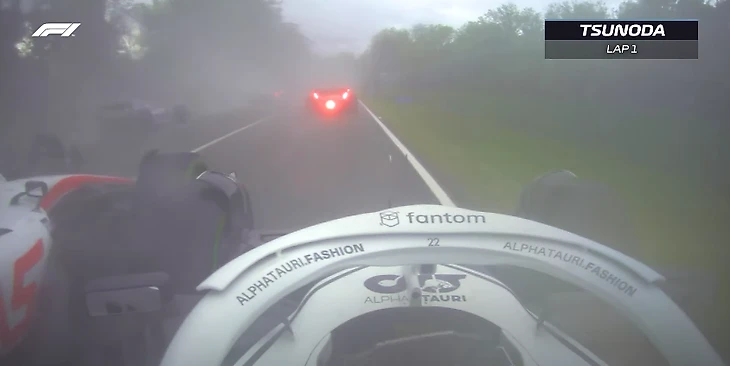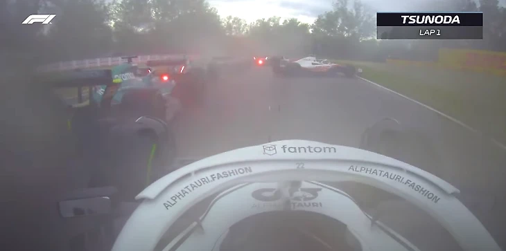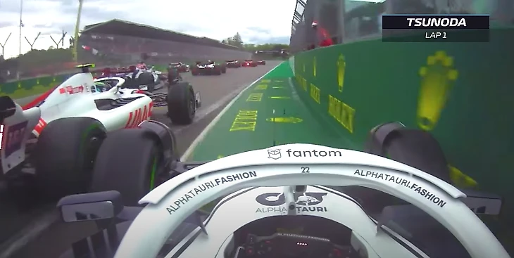 Однако прошел год – и теперь Шумахер использует те же приемы для обороны позиции. Вот, смотрите, как выглядели первые метры гонки в Имоле глазами Юки Цуноды из «Альфа Таури»: