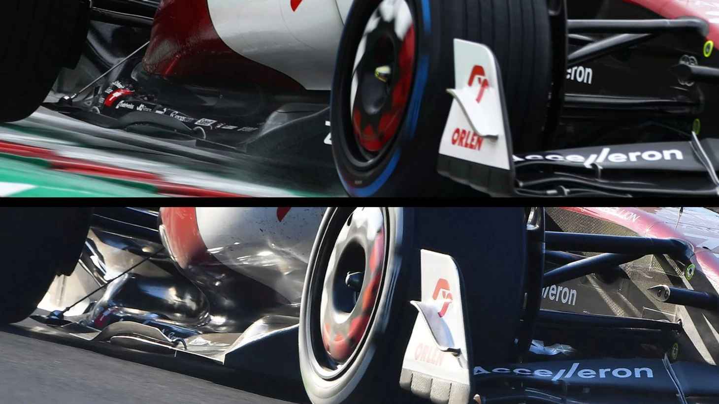 «Альфа Ромео» утверждает, что это изменение «улучшает поток воздуха перед задними шинами и диффузором, способствуя более эффективной работе всей аэродинамики». В ответ на новые аэродинамические правила этого года, включающая себя туннели Вентури под днищем, команды все еще находятся на ранних стадиях поиска оптимального компромисса между потоками воздуха в верхней и нижней частях кузова.