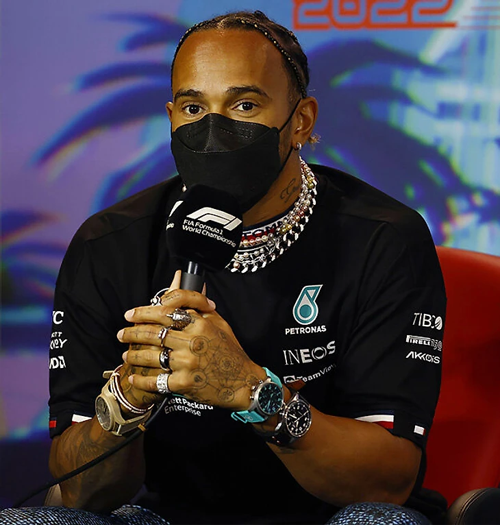 Но Льюису Хэмилтону, кажется, все равно – он отказался подчиниться запрету, а на пресс-конференцию перед Гран-при нацепил на себя какое-то неприличное количество украшений.