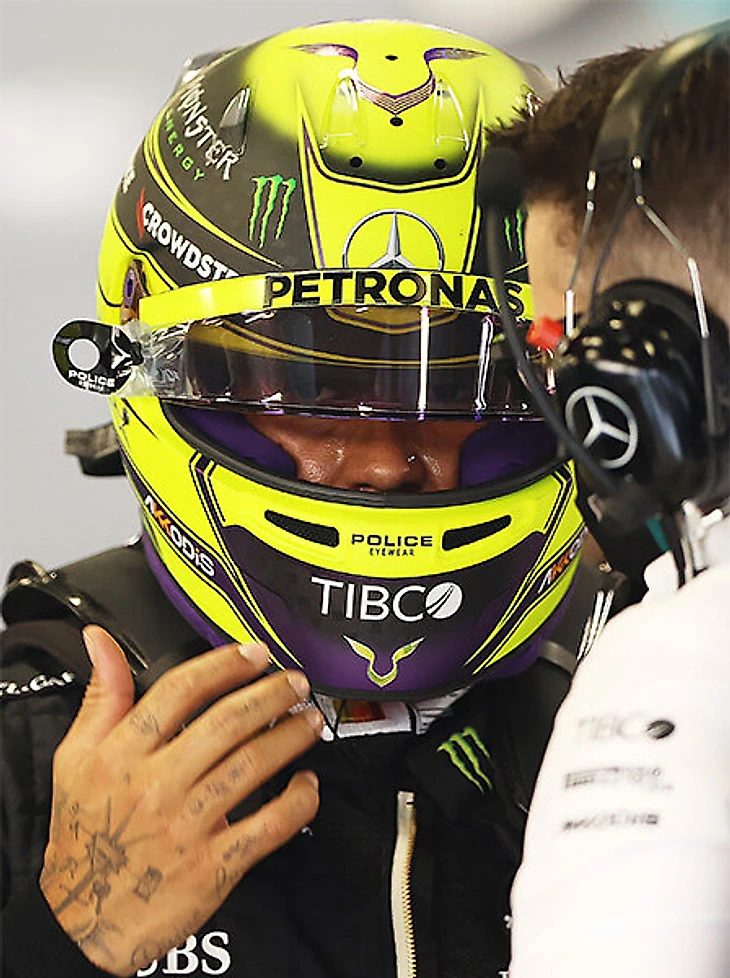 Например, так сэр вице-чемпион 2021-го выглядел после финиша прошлогоднего Гран-при Абу-Даби: