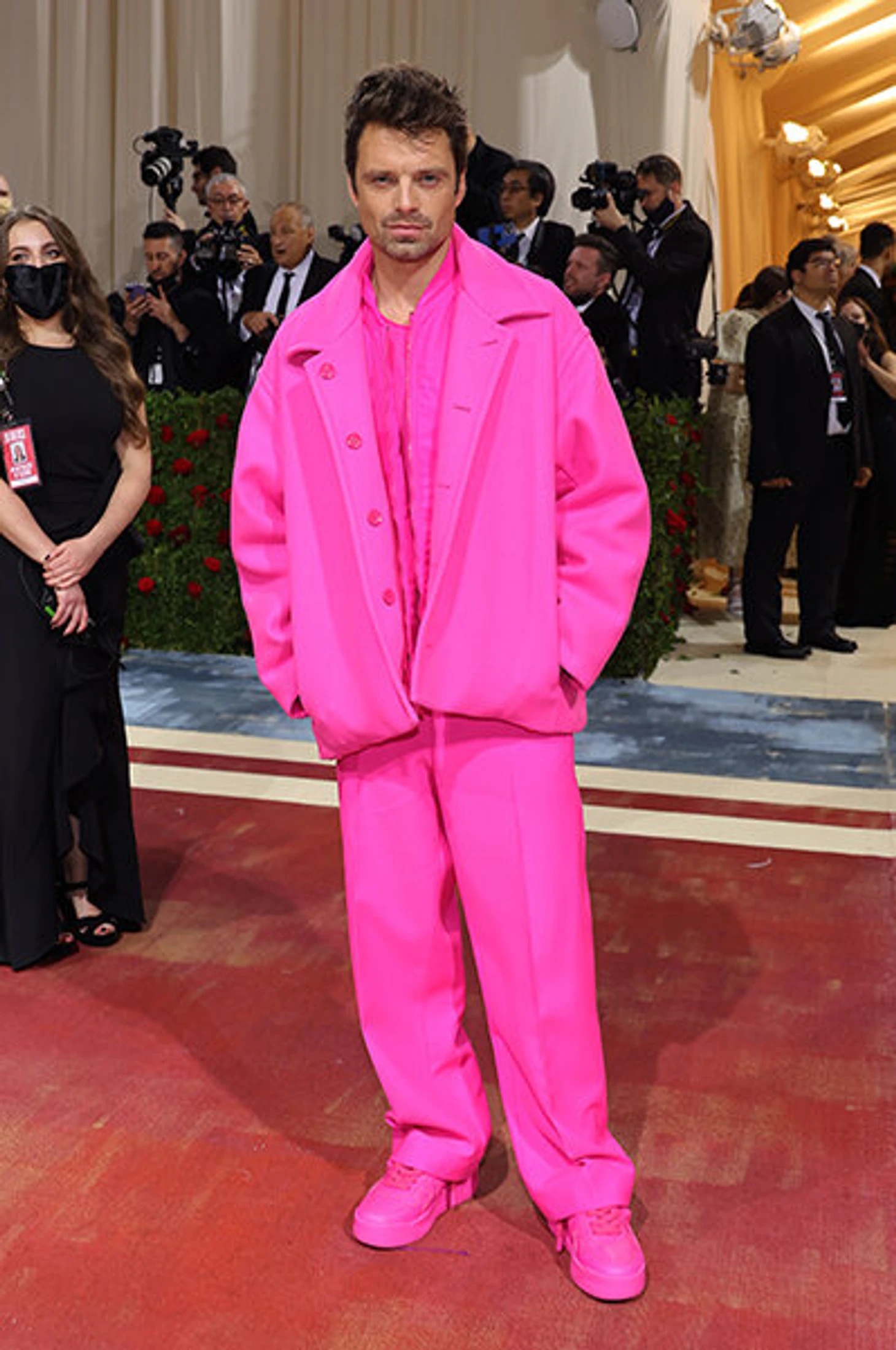 В этом году британец пропустил костюмированный прием, который состоялся 2 мая. Самым обсуждаемым мужским образом стал яркий наряд звезды «Первого мстителя» Себастиана Стэна. Это монохромный костюм цвета розовой фуксии от Valentino.