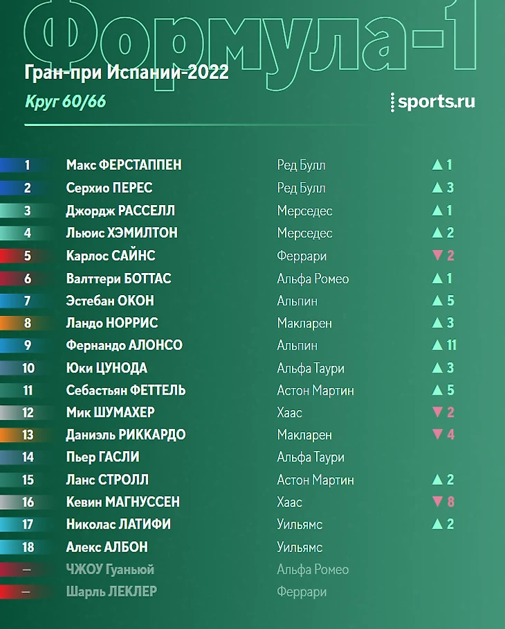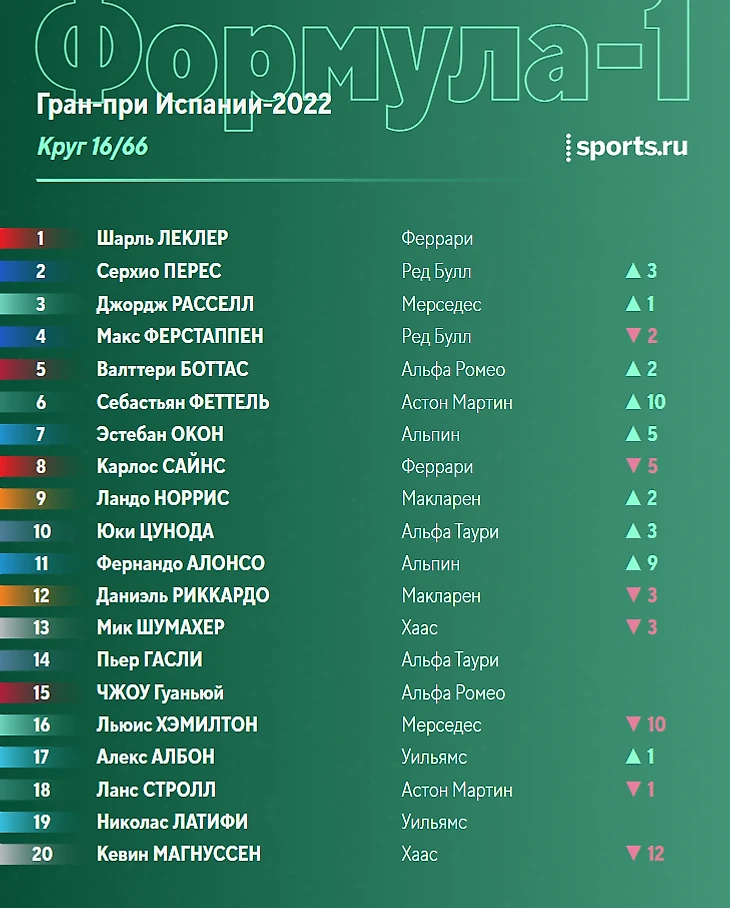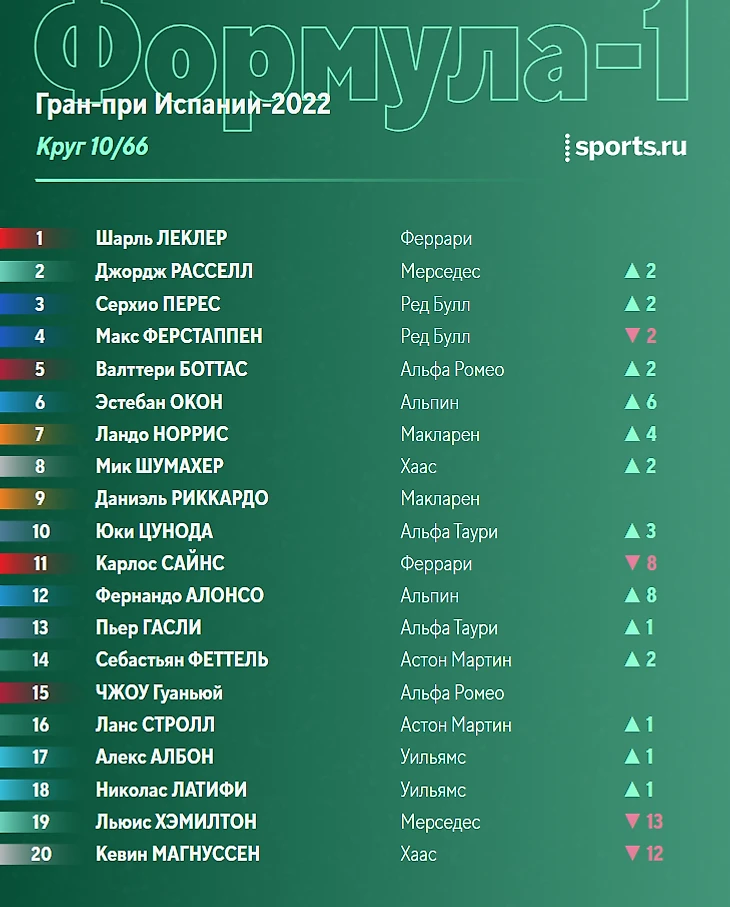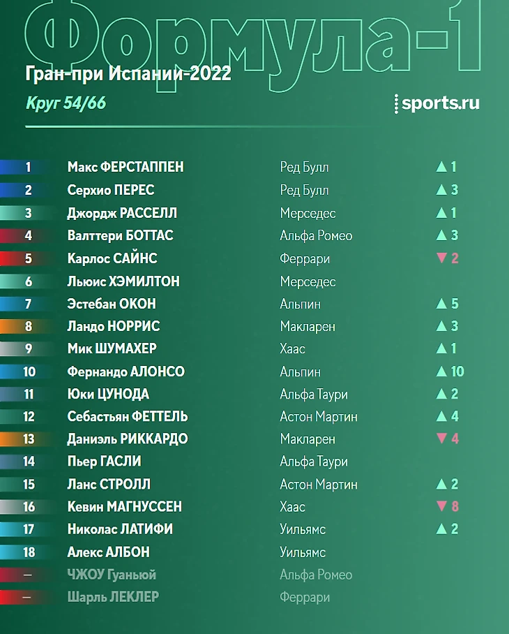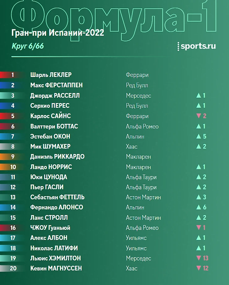 И, да, у нас новый лидер чемпионата – Ферстаппен опередил Леклера, хотя еще несколько гонок назад в это было невозможно поверить.