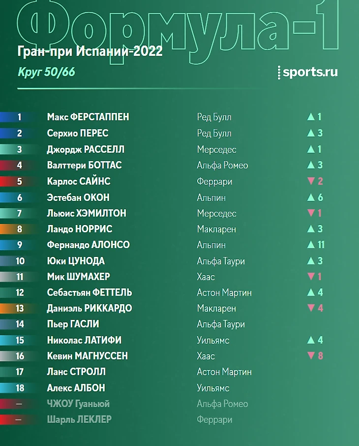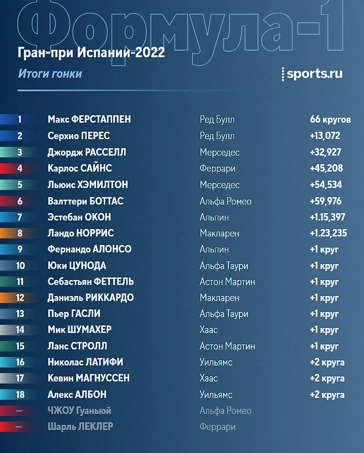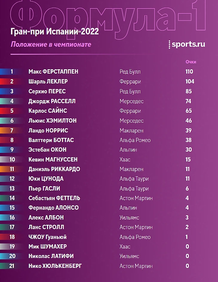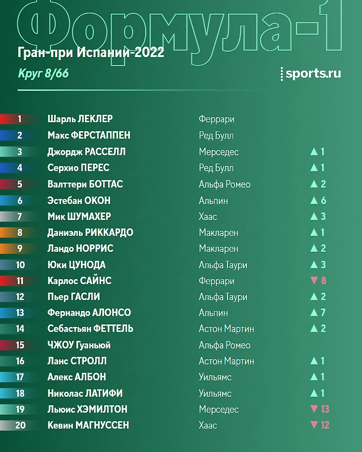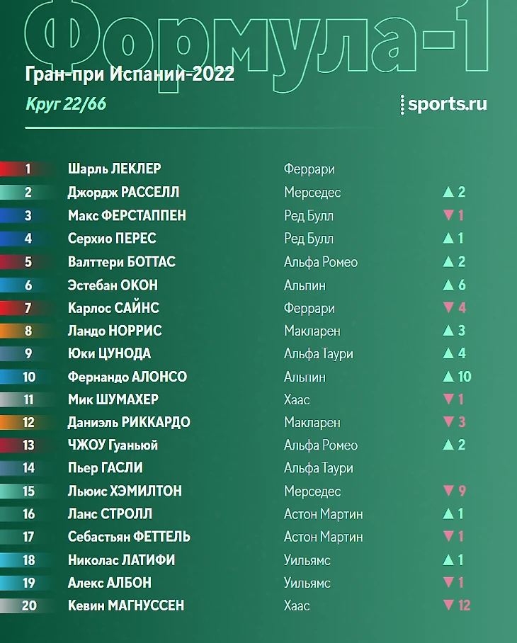 И, да, у нас новый лидер чемпионата – Ферстаппен опередил Леклера, хотя еще несколько гонок назад в это было невозможно поверить.