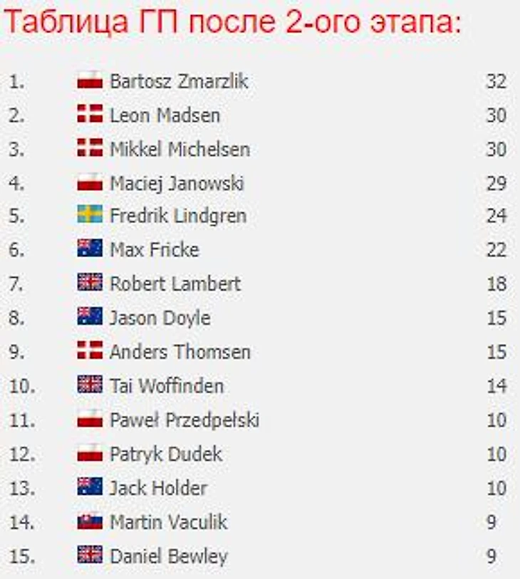 Сюрприз в виде победы на этапе сделал Макс Фрик, единственный гонщик в мировой серии, который выступает в первой польской лиге. На самом деле свое стремление к победе он показал незадолго до полуфиналов. Именно тогда он вел серьезную борьбу за победу в 20 заезде с Бартошем Змарзликом, и австралиец тогда выиграл несколько сантиметров. Очевидно, он что-то нашел в своем оборудовании, отправившись с четвертой дорожки, которая ему очень понравилась.