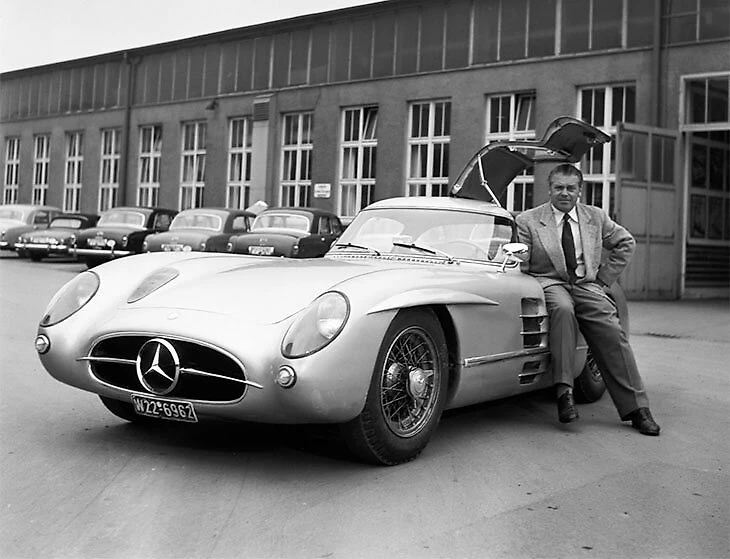Основой для модели-рекордсмена стал легендарный болид W196: на нем «Мерседес» пришел в «Формулу-1», а Хуан-Мануэль Фанхио завоевал два из своих титулов (в 1954-м и 1955-м). Позже W196 переделали под другие серии – модель назвали W196S (она и называется сейчас 300 SLR). За ее рулем победитель 16 Гран-при и четырехкратный вице-чемпион «Ф-1» Стирлинг Мосс выиграл гонку «Миле Милья» – заезд в 1000 миль между Брешией и Римом по публичным дорогам (часть чемпионата мира по гонкам на спорткарах в тот момент). Машина даже лидировала в «24 часах Ле-Мана» 1955 года, но все закончилось известной трагедией: гонщик «Мерседеса» Пьер Левег ударился об соперника на стартовой прямой и вылетел прямо в зрителей. Погибло 84 человека. «Мерседес» покинул гонки на десятилетия – в качестве заводской команды вернулся лишь в ноябре 2009 года.