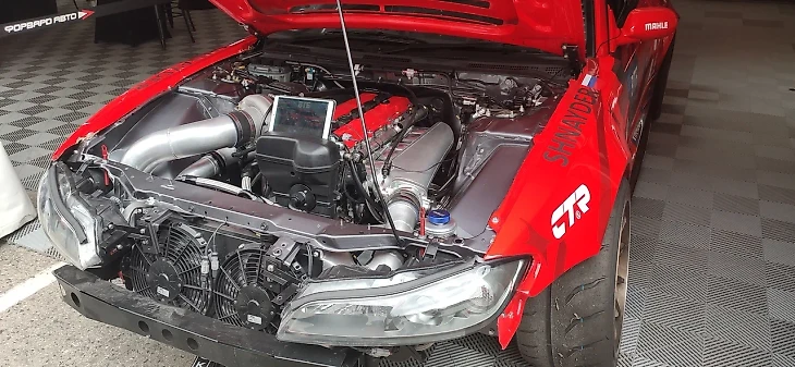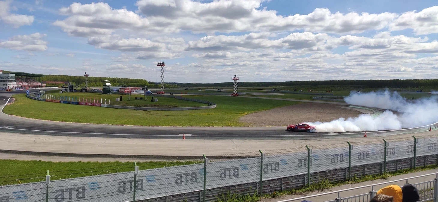 Для всех, кто был в прошедший уик-энд на трассе Нижегородское кольцо, эти дни запомнятся нетипично холодной для второй половины мая погодой. Во время тренировочных дней был и холодный дождь, и град, соревновательные дни, к счастью, прошли без осадков, но температура воздуха в субботу еле достигала 10 градусов, а в воскресенье и вовсе была в районе 6-7 градусов. А в ночь с субботы на воскресенье были заморозки до минус двух. Кроме неудобств для зрителей, судей, механиков, пилотов и всех, кто проводил большую часть времени на улице, погода оказала влияние и на сами заезды. Из-за низкой температуры воздуха и сильного ветра солнце неспособно было прогреть асфальтовое полотно гоночного трека, что приводило к недостаточному сцеплению шин с дорогой. Да, дрифт - это про скольжение, но всё-таки такая вещь как зацеп достаточно важна для того, чтобы машина быстро, точно и по прогнозируемой траектории двигалась по трассе. Следствием таких неидеальных и меняющихся в течение дня условий стали сразу несколько аварий в процессе заездов топ-32 и несколько вылетов с трассы в течение как топ-32, так и топ-16. В такие моменты важным становится не только мастерство пилотирования, но и чутьё пилотов, механиков и споттеров в выставлении правильного давления в шинах, а так же в их достаточном прогреве.