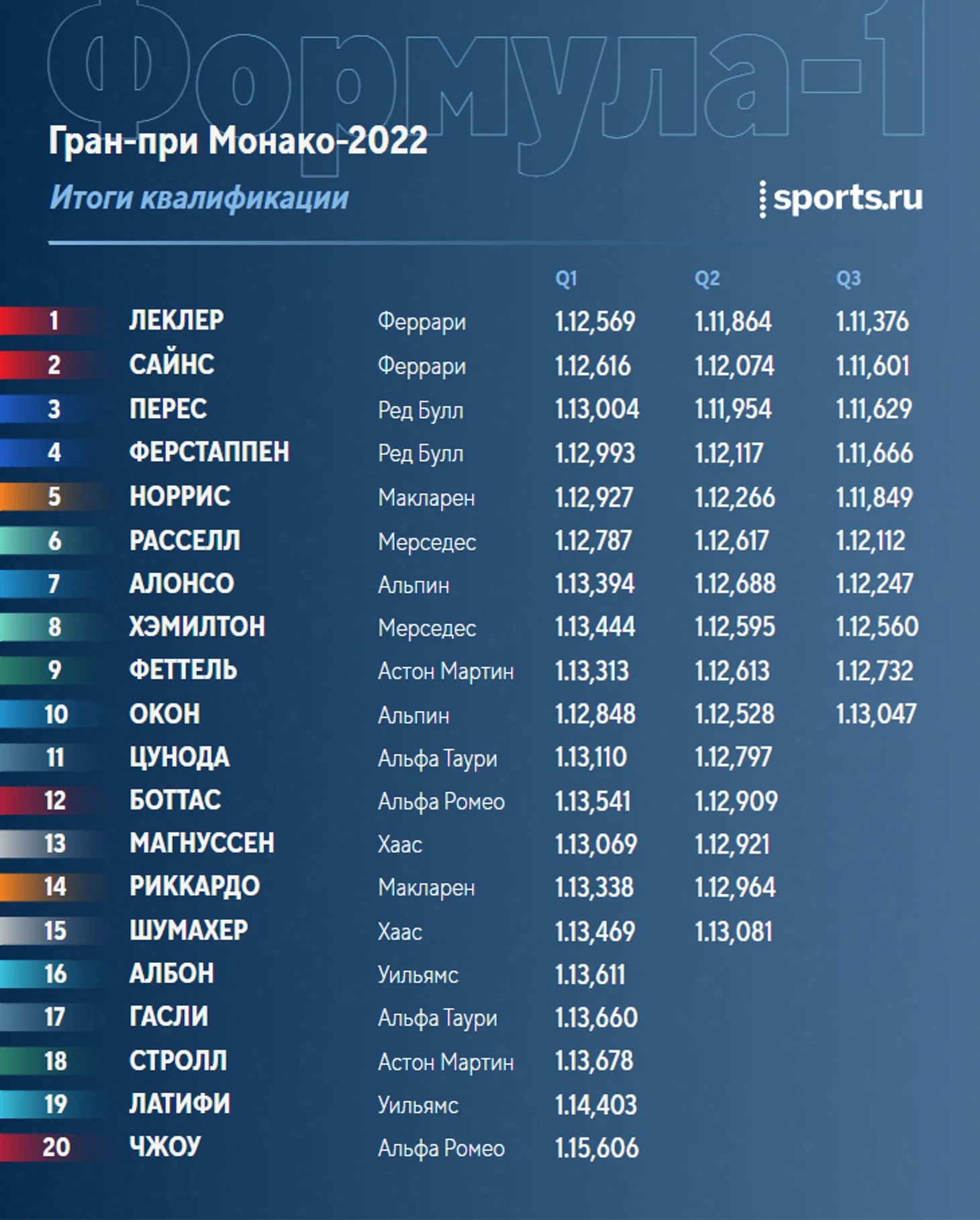 Ну ладно, все боялись не совсем этого. Макс Ферстаппен и Шарль Леклер так и не столкнулись в битве за позицию – это Карлос Сайнс налетел на Серхио Переса. Уже после въезда мексиканца в стену из-за ошибки на решающем круге: