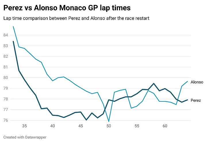 А лучший круг испанца – 1.15,882 – оказался третьим среди всех в гонке (быстрее проехали только выбравшие самый поздний пит-стоп Норрис и Цунода).