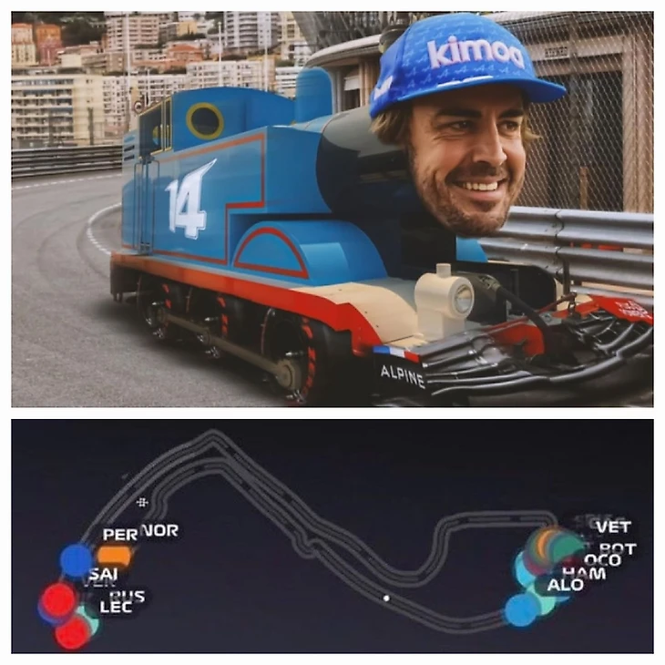 Если из фаворитов кто-то попадает в такой трафик – гонка моментально схлопывается. Нет, правда: к примеру, Карлос Сайнс списал потерю победы на неудачный один неудачный круг за таким аутсайдером. Льюис Хэмилтон вообще имел все шансы сразиться за топ-5 с Джорджем Расселлом и Ландо Норрисом, но в итоге финишировал восьмым с отставанием 40 секунд от напарника. А все из-за Фернанадо Алонсо, тормозившего пелотон – только посмотрите, как это выглядело на карте: