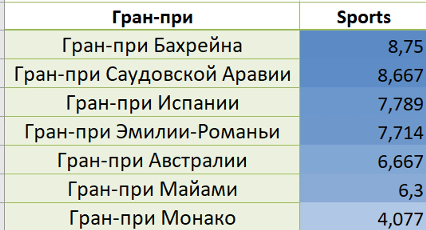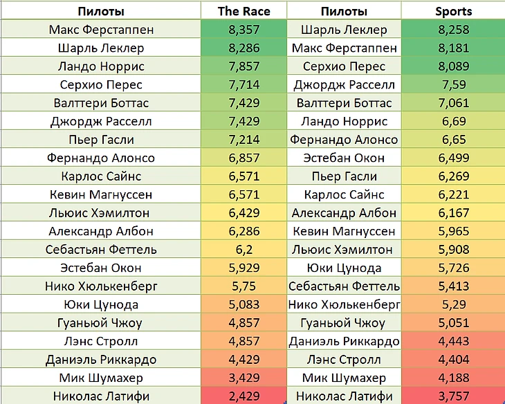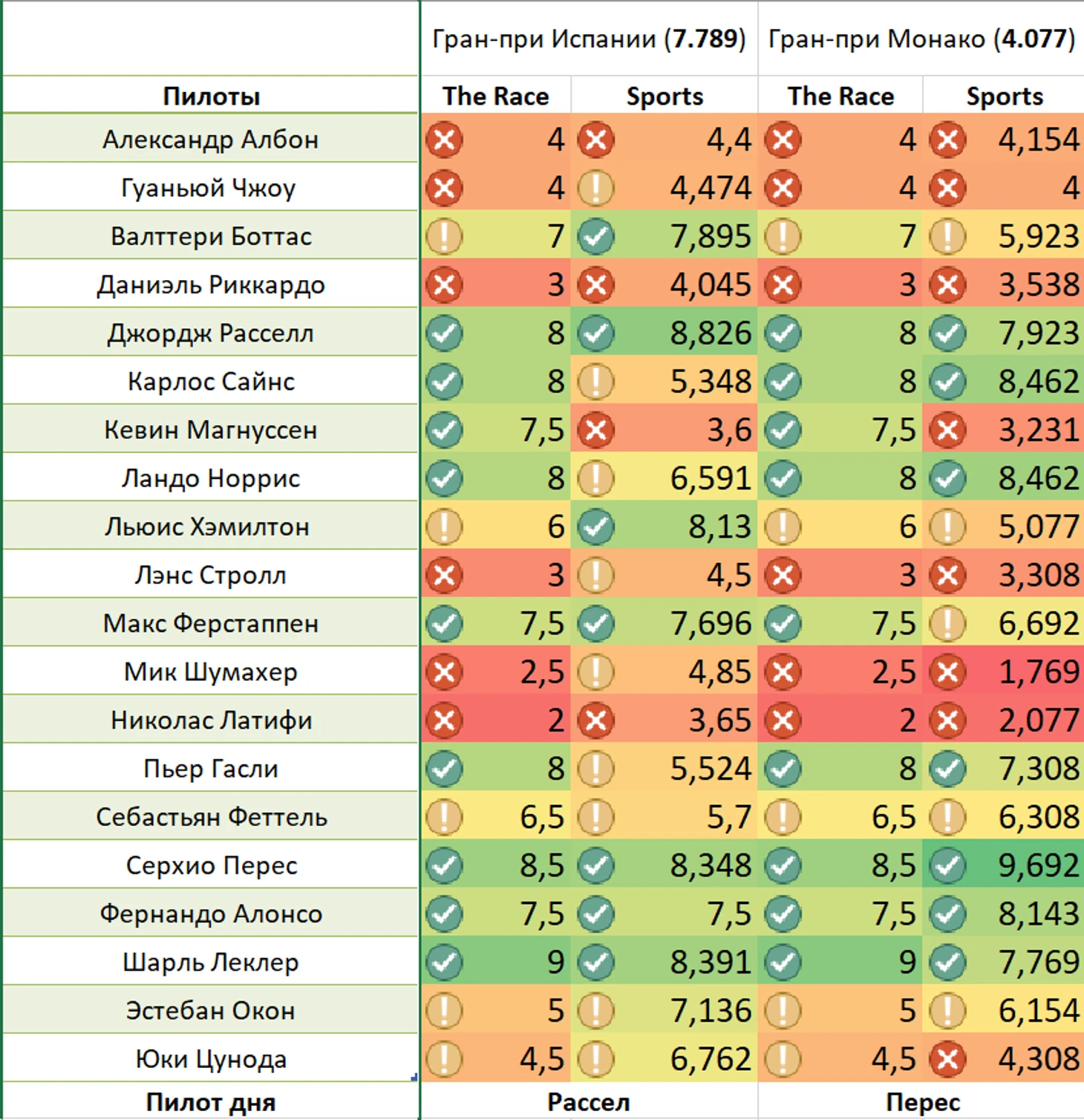 Средние оценки за сезон в сравнении с ориентиром в лице издания The Race: