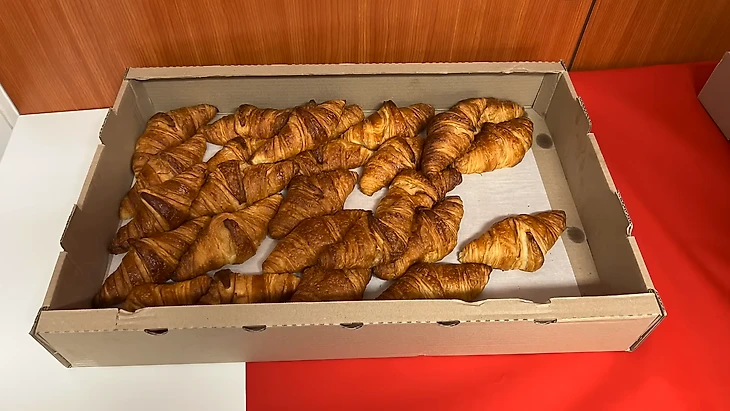 Сотрудникам медиа-центра повезло еще меньше: вот вся еда, которую им предлагают на день: пара круассанов и сэндвич.