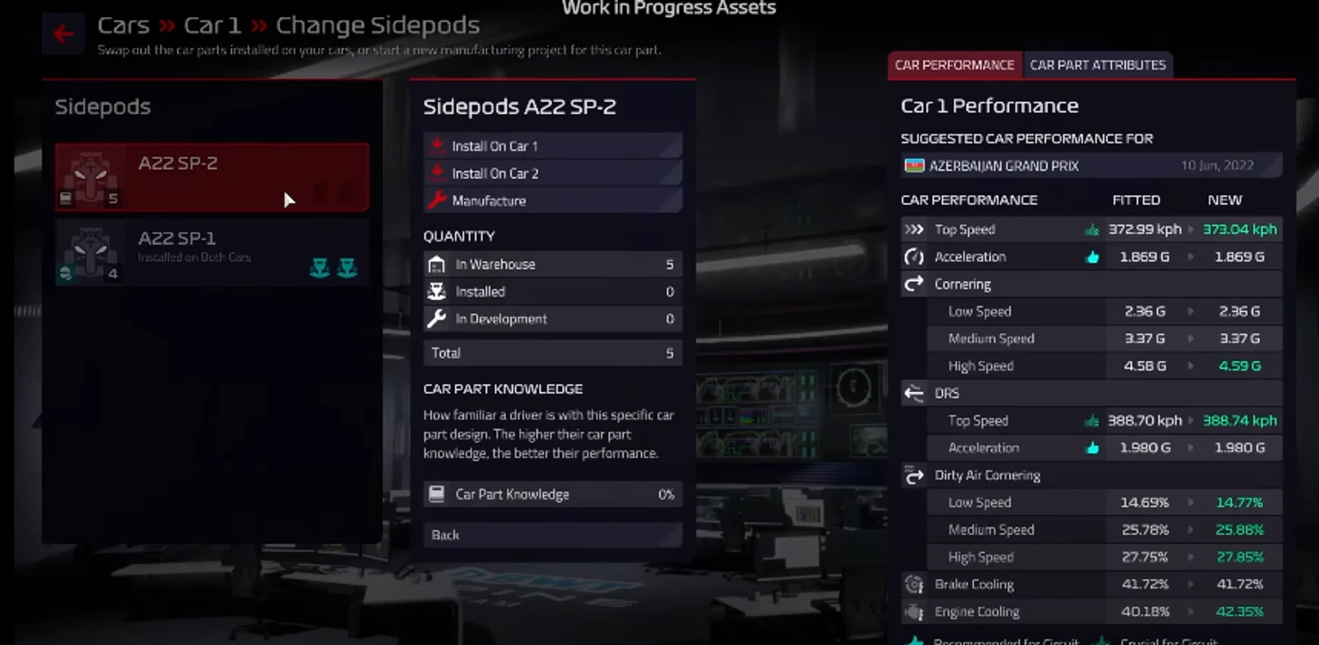 Можно самому выбирать, какие обновления устанавливать, в зависимости от динамики изменения показателей (скоростей на прямых, перегрузок, генерирования турбулентного воздуха и даже эффективности охлаждения тормозов и мотора) – и не забыли про атрибут «знания запчасти»: опыт использования тоже влияет!