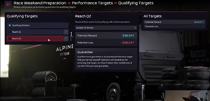 К примеру, выбор цели и потенциального бонуса за успех вроде «попадания во второй или третий сегмент квалификации».