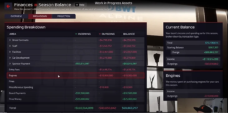 База команды – от мощностей по развитию машины до офисов для персонала и операционных мощностей. Со стоимостью содержания в месяц (к примеру, мастерские для машин обходятся «Альпин» в $1,7 млн – с учетом упора на реализм можно считать сумму приближенной к истине) до цены апгрейдов: