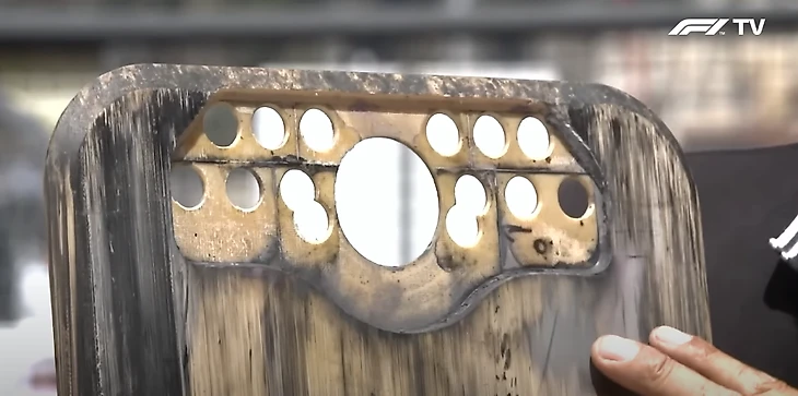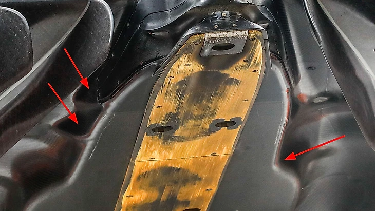 Нужны для технических делегатов ФИА – регламент требует 6 таких мест в сумме на трех планках для измерений: чтобы можно было засунуть туда прибор и проверить, осталось ли хотя бы 9 мм. Да, по сути всю планку не измеряют, а проверяют только в заранее известных конкретных местах.