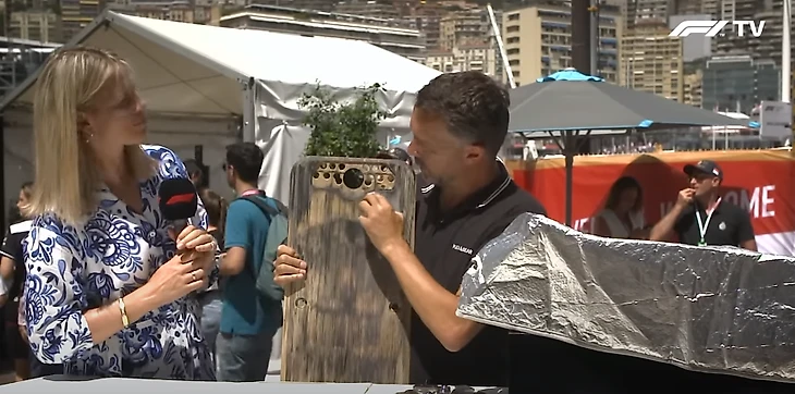 «Правила требуют планку в 30 см из материала, аналогичного по свойствам дереву. Материал – что-то вроде сверхплотной резины. Выбор материала не ограничен правилами, каждая команда может выбрать собственного поставщика, но планка должна соответствовать показателям плотности из регламента: с коэффициентом уплотнения от 1,3 до 1,6. Так что это не дерево. Однако этот материал должен быть огнеупорным! Ведь он много трется об асфальт, оттуда большие температуры. Потому предписано использовать материал, который не загорится. Этот даже не создает дыма – разве что чуть-чуть. Зато он создает наименьшее возможное сопротивление – самое легкое проскальзывание без износа.