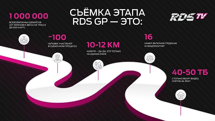 Но Роману Баркову опыта в этом не занимать – ведь это именно он снимал самые первые трансляции RDS в далеких уже 2010-х. Причем за эти годы он не только изучил все трассы в мельчайших подробностях и собрал крутую команду, но и придумал несколько ноу-хау.