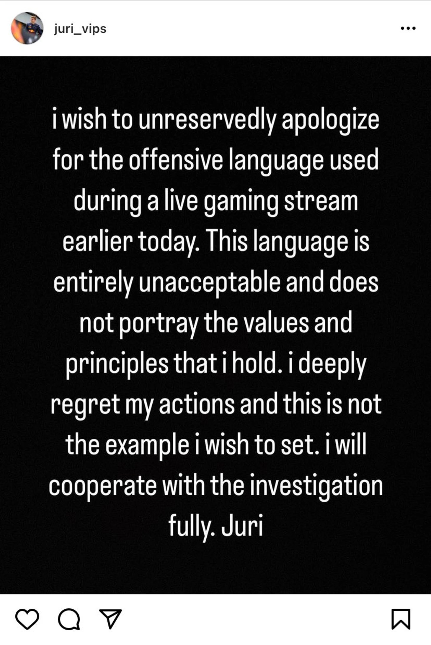 Высказался и владелец команды «Хайтек», за которую Випс выступает в «Формуле-2»: «Я потрясен и шокирован, когда услышал об этом инциденте. Комментарии Юри оскорбительны и не соответствуют ценностям «Хайтека» о равенстве и разнообразии».