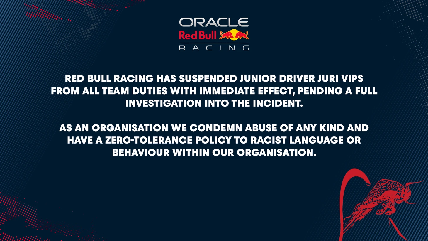 И он был прав: уже через час мир увидел официальное заявление организации: «Ред Булл» отстранил юниора Юри Випса от всех командных обязанностей и проведет полноценное расследование инцидента.