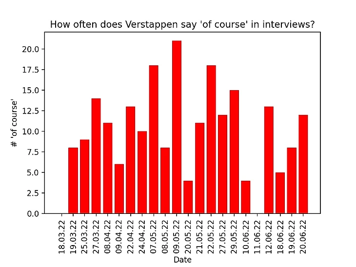 А когда реддитор theMSCWins исследовал интервью действующих пилотов, то обнаружил занятный факт: Макс Ферстапппен произнес «конечно» (of course) в интервью уже 220 раз! Вплоть до 20 раз за день: