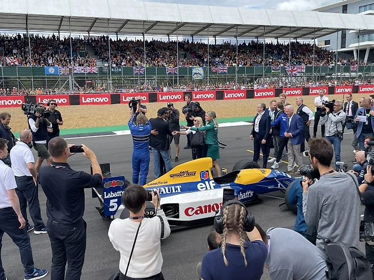 Незадолго до начала Гран-при был устроен заезд Себастьяна Феттеля - которому сегодня исполнилось 35 лет - на исторической машине Найджела Мэнселла ("Уильямс" FW14B - то самой, на которой британский лев привез свои знаменитые усы к титулу в 1992-м, и которую сам немец купил на аукционе в прошлом году).