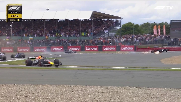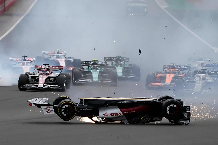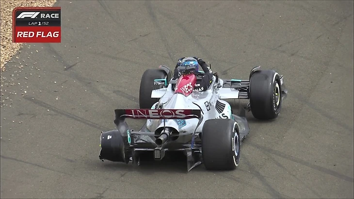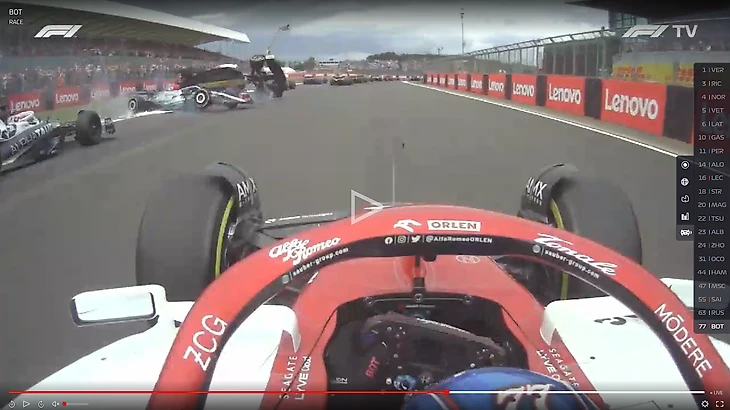 В аварии пострадало несколько машин: помимо Расселла в передрягу попали Чжоу (пролетел вверх тормашками!), Албон, Цунода.