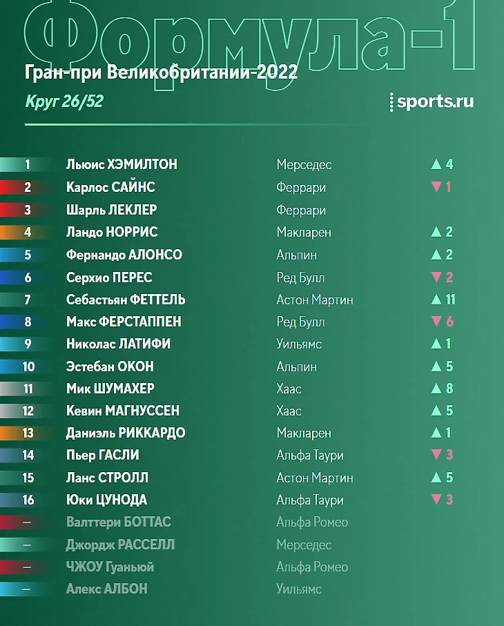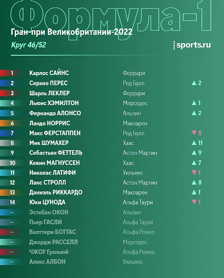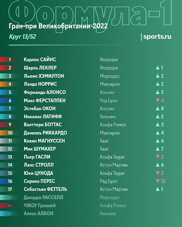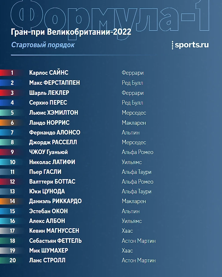 Сегодня за победу будут бороться Макс Ферстаппен из «Ред Булл» (его тут освистывают) и парни из «Феррари» - Карлос Сайнс и Шарль Леклер. Сможет ли в их противоборство вмешаться Серхио Перес? Дотянется ли Льюис Хэмилтон до подиума и на этот раз? На что способен на родной земле Ландо Норрис? Продолжит ли успешные выступления Чжоу Гуаньюй? И удастся ли отыграться после субботнего провала Себастьяну Феттелю?
