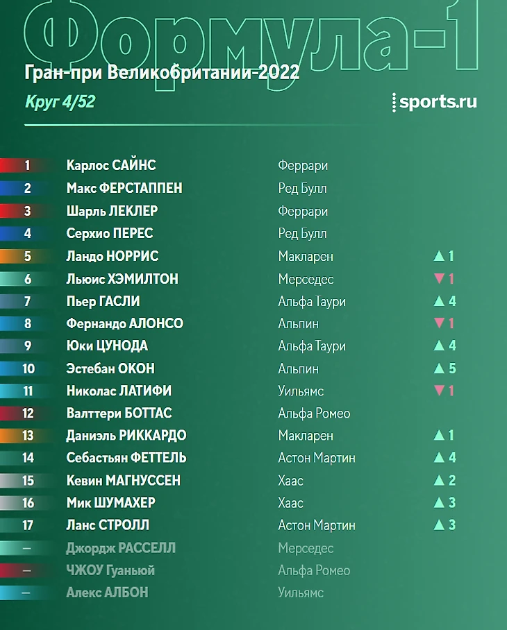 То есть на поуле у нас Сайнс, второй - Ферстаппен, третий - Леклер.