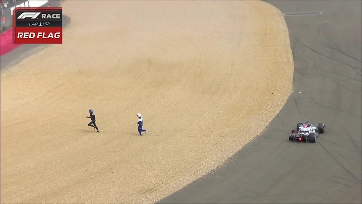 На старте Пьер Гасли попытался сунуться между болидами Чжоу и Расселла, но когда Расселл начал смещаться на внутреннюю траекторию - Гасли сбросил скорость. Однако француз не успел - произошел контакт, "Мерседес" бросило поперек трассы, оказалась задета машина Чжоу - и та перевернулась и полетела в отбойники.