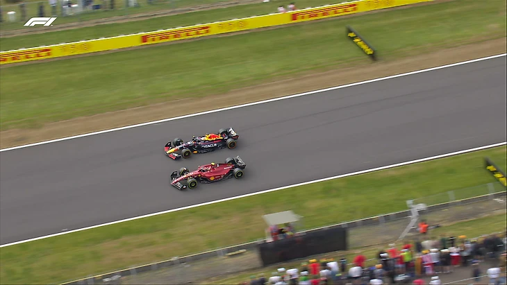Сайнс немного ошибся в "Беккетс" - потерял скорость в повороте, и Макс тут же обогнал испанца на выходе из поворота!