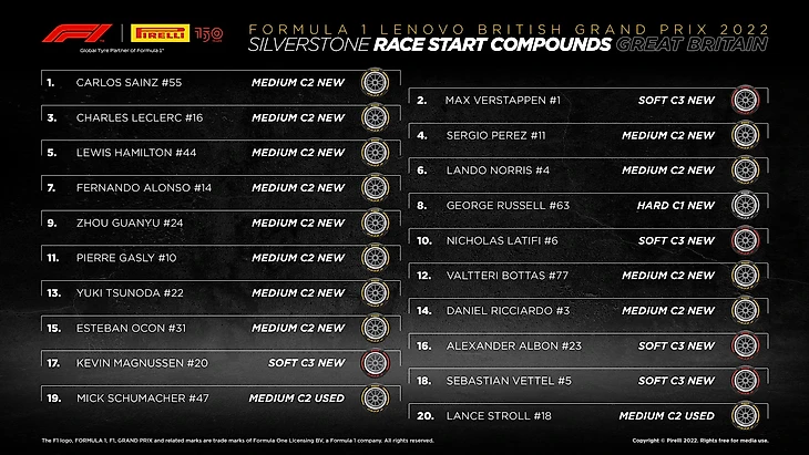 В топ-10 Ферстаппен и Латифи начинают на "софте", почти все остальные в топ-10 - на "медиуме", а Расселл - вовсе на "харде"!