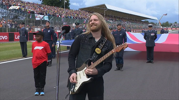 Звезда Евровидения Сэм Райдер исполнил God Save The Queen. Сыграл на электрогитаре (почти в стиле Брайана Мэя) и спел - получилось энергично и эффектно. Респект парню!