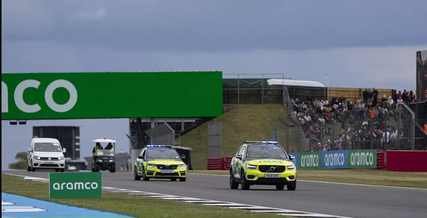 Первый круг Гран-при Великобритании запомнился крупнейшей аварией года – Чжоу улетел в барьеры на «Альфа Ромео» после столкновения с Расселлом и Гасли, и лишь гало спасло новичка от неминуемой гибели. Сразу после крэша дирекция гонки вывесила красные флаги, и всех заботила только судьба китайского пилота – но вообще во время первого круга еще случилось вторжение на трек эко-активистов из организации противников нефти и нефтепродуктов Just Stop Oil.