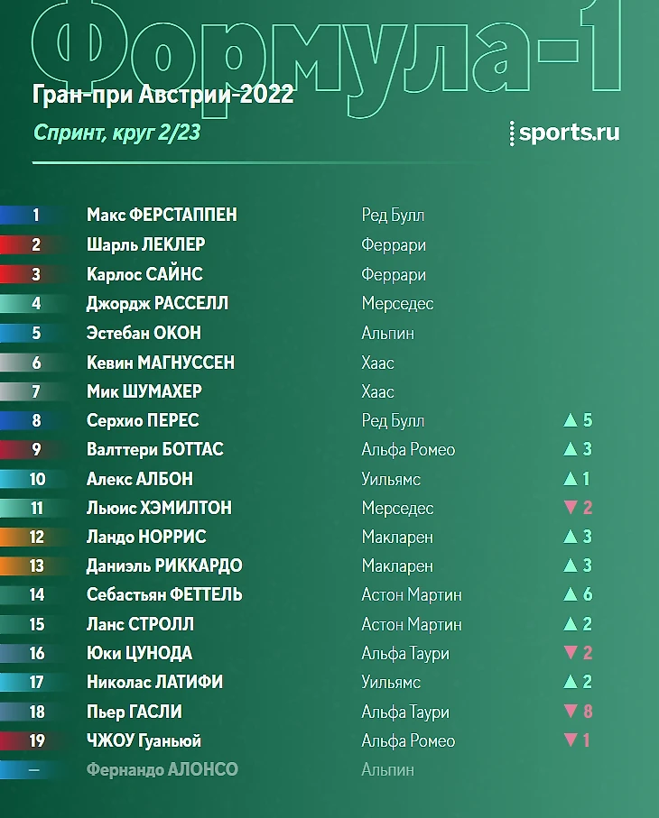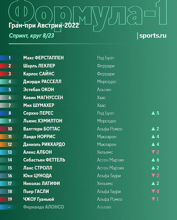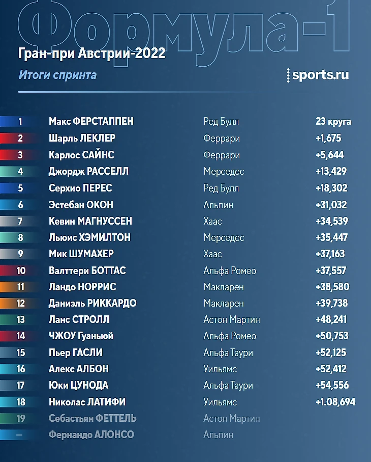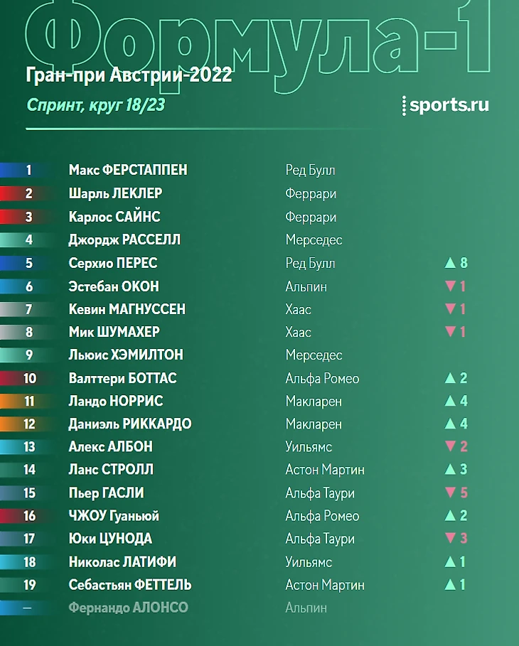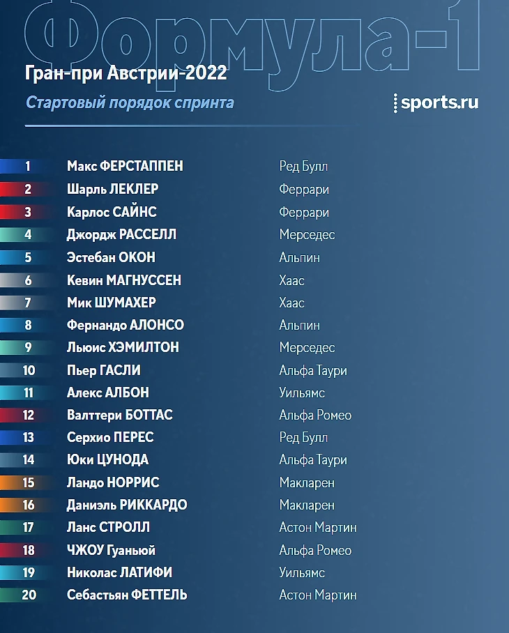 Вот-вот в Шпильберге начнется спринт (короткая гонка длительностью 30 минут или 100 километров) в рамках Гран-при Австрии, 11-го этапа «Формулы-1» сезона-2022.