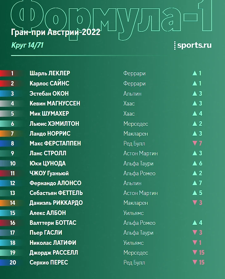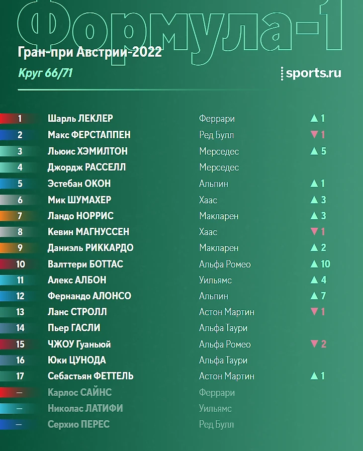 Начинается и стратегическая борьба. Леклер уперся сразу в нескольких круговых. У Ферстаппена же наоборот будет возможность атаковать и фактически ответить "Феррари" тем же. Хотя Максу говорят больше думать об обороне и борьбе с Хэмилтоном, чем о "Феррари".