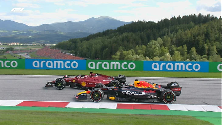 Поехали! Ферстаппен удержал лидерство, Леклер - второй, а вот Сайнсу пришлось усиленно отбиваться от атак Расселла!