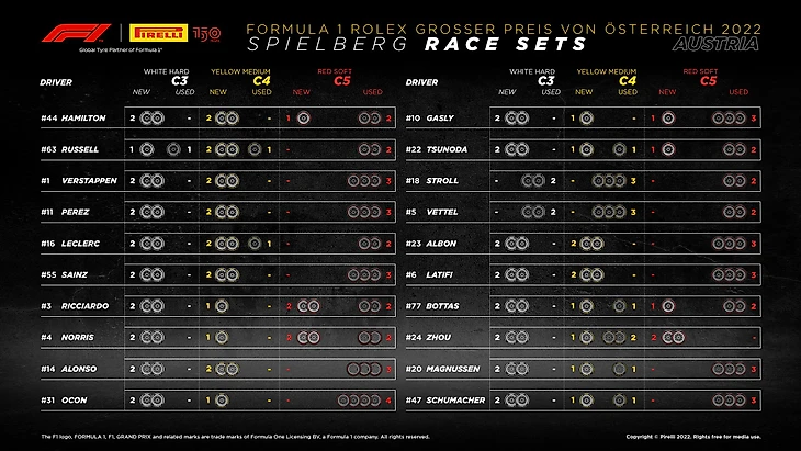 Никто из пилотов не рискнул стартовать на "софте". Чжоу, Цунода, Феттель, и Алонсо выбрали "хард". Все остальные - на "медиуме".