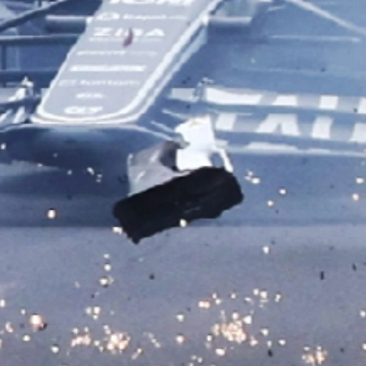 Вместе с верхней дугой безопасности – которая вообще-то должна предохранять пилота в случае переворота. Тут же она она отказала и отвалилась – Чжоу из «Альфа Ромео» спасло исключительно гало, иначе он бы ехал по асфальту шлемом. Да, буквально.