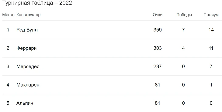Положение в чемпионате