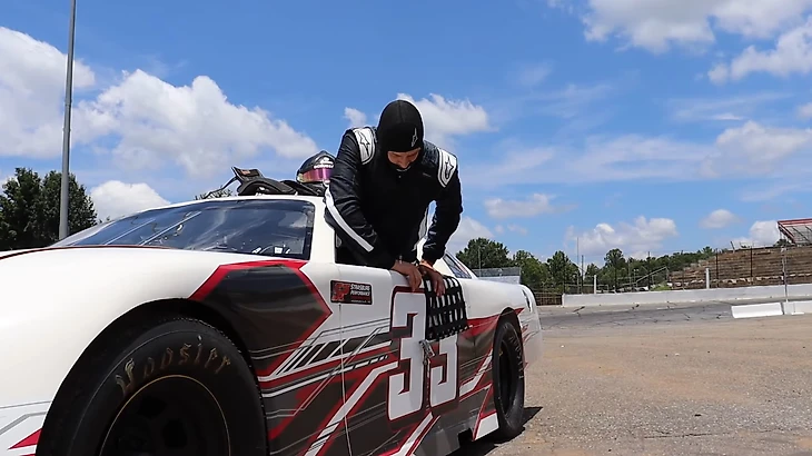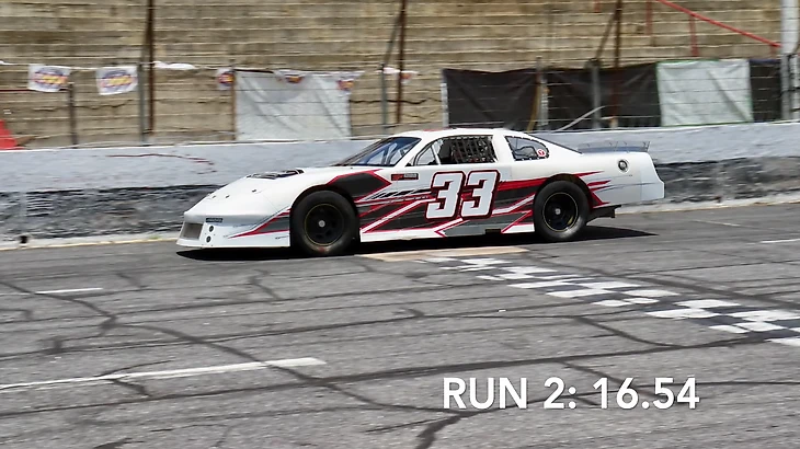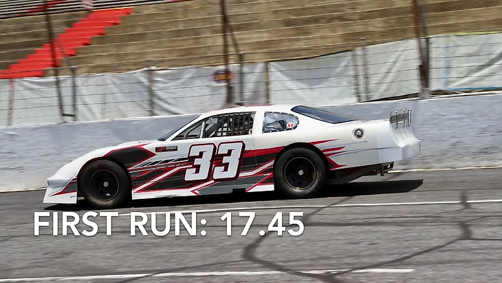 Первый зачетный овал протяженностью 3/8 мили (0,584 км) Даниил проехал за 17,45 сек – cредняя скорость 120 км/ч.