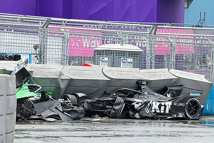 «Как только я нажал на педаль зарядки аккумулятора, наткнулся на стену воды, поплыл и заблокировал колеса – тормоза сделали все только хуже, – признался Ник Кэссиди о моменте перед аварией. – Я оказался пассажиром. Все произошло очень быстро, и я такой «вот дерьмо, мы все».