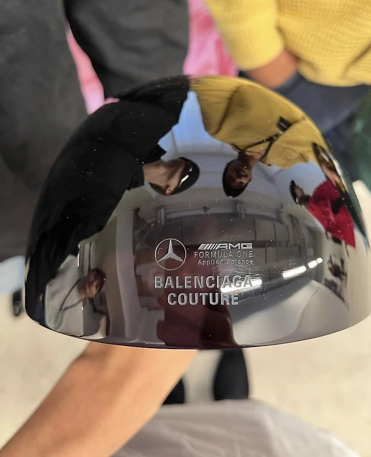 Защитная маска стоит $5600 и доступна исключительно в новом магазине Balenciaga Couture Store в Париже. Стандартная версия поставляется с логотипами команды «Мерседеса» и Balenciaga сзади. А для тех, кто может позволить себе повседневную одежду от кутюр, – есть возможность персонализировать аксессуар и добавить свои инициалы.