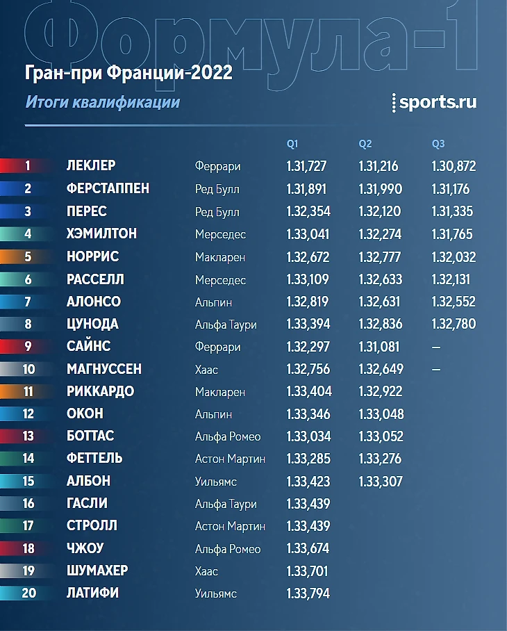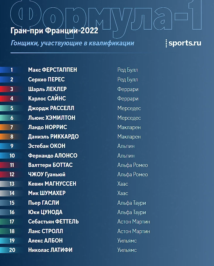 23 июля на трассе «Поль Рикар» состоится квалификация к Гран-при Франции, 12-му этапу «Формулы-1» сезона-2022.