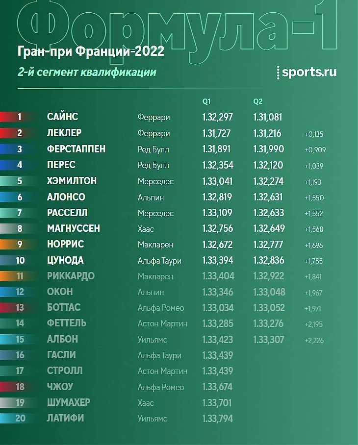 И да, у нас будет сразу два моторных штрафа - Карлосу Сайнсу ("Феррари") и Кевину Магнуссену ("Хаас") полностью заменили силовые установки. И они сегодня поведут борьбу между собой за более высокое место - но лишь на последнем ряду стартовой решетки.