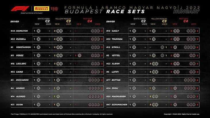 Традиционная информация от «Пирелли» - о том, сколько у кого осталось комплектов шинг. Свежий «софт» среди пилотов ведущих команд есть только у Переса.