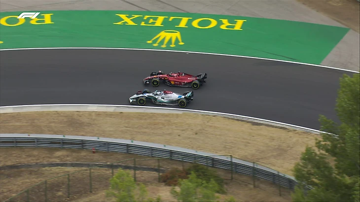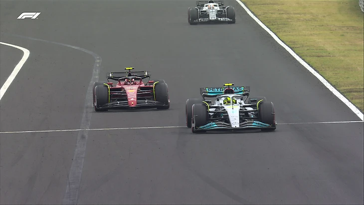 Десять кругов до конца, отрывы в группе лидеров все сокращаются. Сайнс подъехал к Расселлу, а Хэмилтон к Сайнсу. Чуть дальше Леклер догоняет Переса.