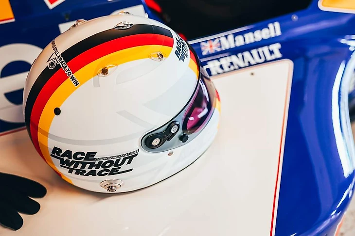 THERE IS STILL A RACE TO WIN – «Еще есть гонка, чтобы ее выиграть» – личный слоган борьбы за окружающую среду: с ним Себ проезжал торжественный круг перед Гран-при Великобритании на 35-летие: на личном чемпионском «Уильямсе» 1992-го, заправленном климатически нейтральным топливом: