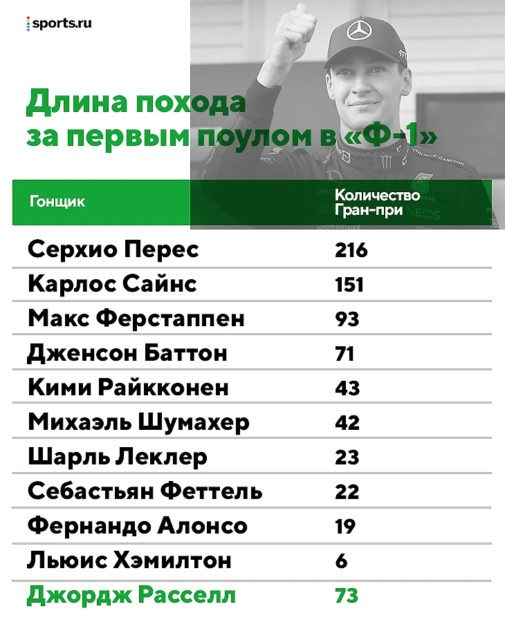 Предыдущая лучшая позиция Расселла в квалификациях – вторая на Гран-при Сахира 2020-го и на Гран-при Бельгии 2021-го.