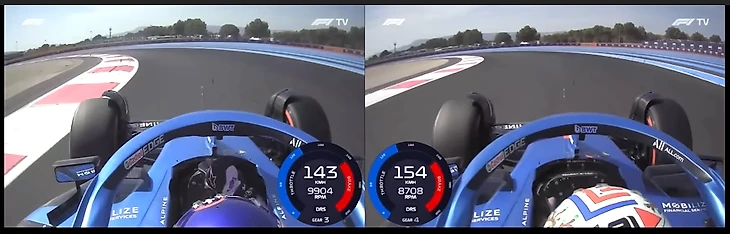 Например, в квалификации на Гран-при Франции покадровое сравнение лучших кругов пилотов «Альпин» показало, чем же Алонсо компенсирует недостатки машины в некоторых поворотах:
