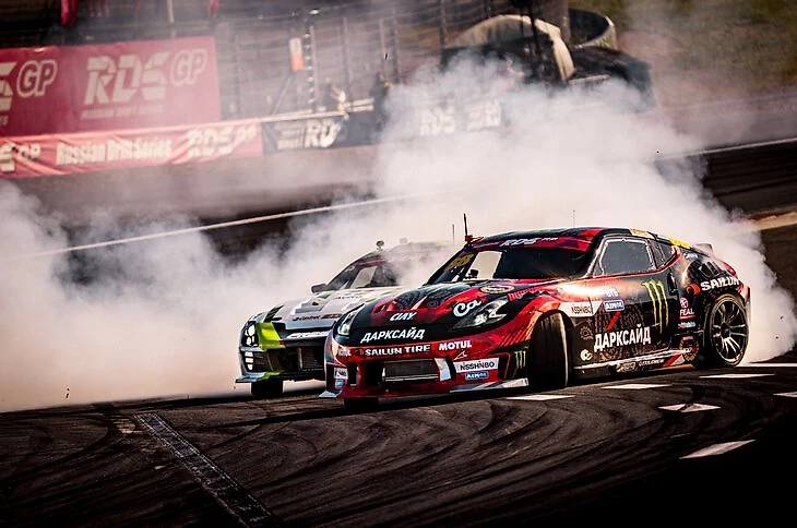 На этапе RDS GP в прошлом году скорость пилотов перед началом заноса варьировалась от 170 до 197 км/ч (тогда как на других трассах, как правило, доходила едва до 150). Да-да! Год назад Дамир Идиятулин, разогнавшись до безумных 197 км/ч, отправил в занос свою «Альтеззу». А теперь представьте, что такой скорости на постановке достигают одновременно два автомобиля и продолжают в сумасшедшем вальсе показывать зрителям и судьям красивейший парный дрифт, буквально дверь в дверь.